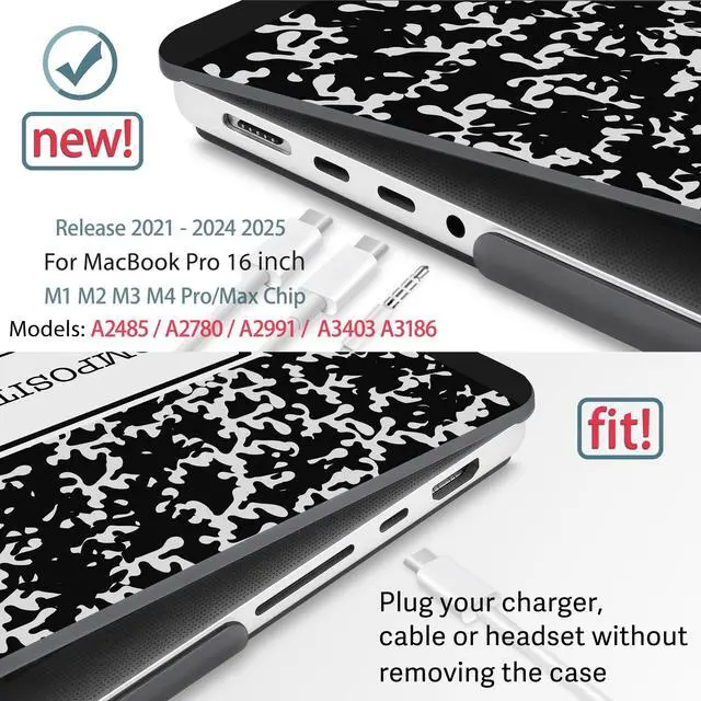 • Designed ONLY to be compatible with M4 MacBook Pro 16 inch A3403, M4 Max A3186, M3 A2991, M2 A2780, M1 A2485 Pro Max Chip with Liquid Retina display Fits Touch ID 2024 2023 2022 2021 Release. Pls verify Model No. the underside of MacBook before buying.