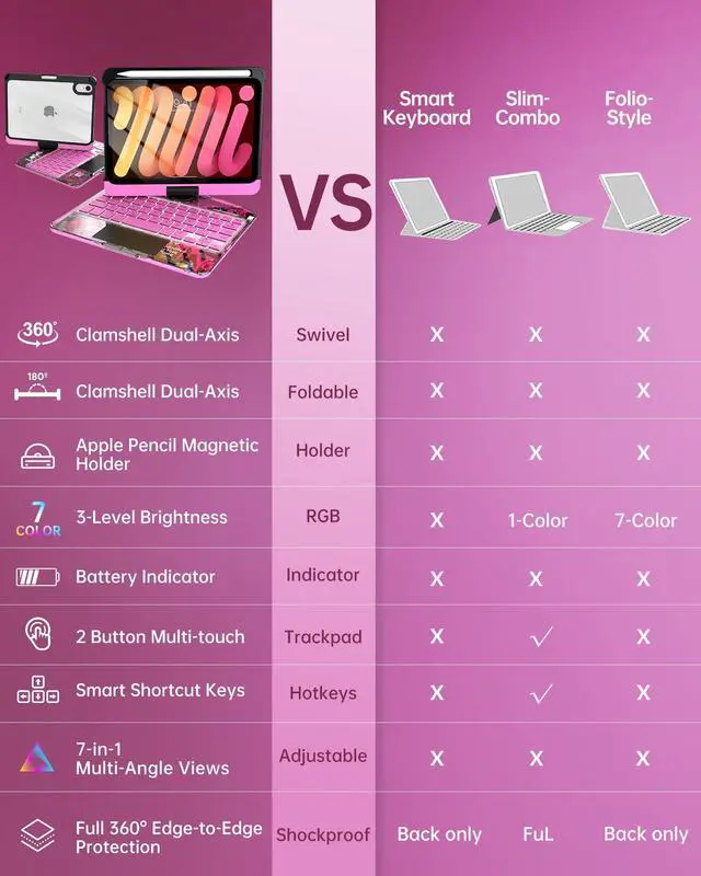 Compatible with iPad mini7/ Mini 6 Fits iPad mini 7 A17 Pro(2024), iPad mini 6(2021). Not for iPad iPad Mini 5 or earlier models. Check and confirm model before purchase.