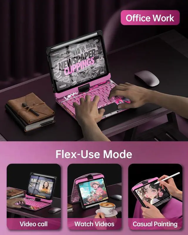 7-Color Backlit Silent Keyboard Magnetic, detachable keyboard with scissor-switch keys for quiet typing. Customize with 7 colors and 3 brightness levels.