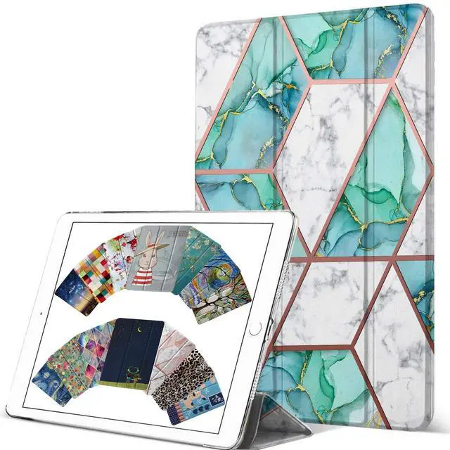 DuraSafe Cases for iPad 9.7 Inch 2014 Air 2 Gen [ Air 2nd ] A1566 A1567 A1566 A1567 MH2V2LL/A MH2W2LL/A MGLW2LL/A Printed Lightweight PC Dual Angle Stand Clear Flip Back Cover - Marble Green