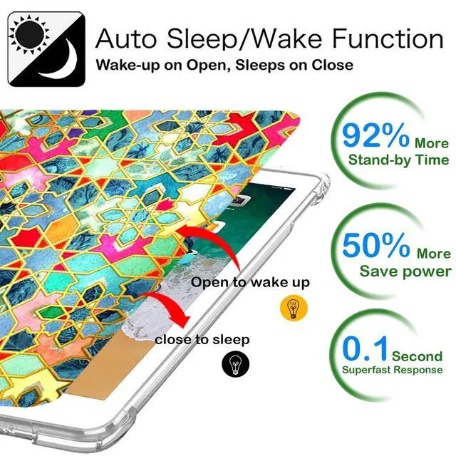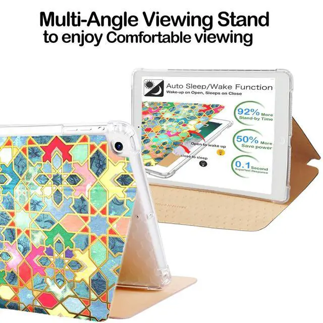 Key FeaturesExclusively designed for all iPad 2018 (6th Gen) / 2017 (5th Gen) & Air 2 / Air 1Smart Auto Sleep/WakeFull Protection & Precise Cutouts for Ports/CameraMulti-Angle Viewing/Typing StandEasy to InstallCompatibilityAll iPad 2018 (6th Gen) / 2017 (5th Gen) & Air 2 / Air 1 ModelsiPad 9.7 2018 (6th Gen) WiFi(A1893 MRJP2LL/A, MR7K2LL/A, MR7J2LL/A, MRJN2LL/A, MR7G2LL/A, MR7F2LL/A)WiFi+Cellular(A1954 MRM52LL/A, MR702LL/A, MR6Y2LL/A, MRM82LL/A, MR7D2LL/A, MR7C2LL/A, MRM52LL/A)iPad 9.7 2017 (5th Gen) WiFi(A1822 MPGW2LL/A, MP2F2LL/A, MP2G2LL/A, MP2H2LL/A, MP2J2LL/A, MPGT2LL/A)WiFi+Cellular(A1823 MPGC2LL/A, MP242LL/A, MP252LL/A)iPad Air 2nd Gen 9.7 Inch 2014WiFi(A1566 MGLW2LL/A, MGKM2LL/A, MGTY2LL/A, MH0W2LL/A, MH182LL/A, MH1J2LL/A, MGL12LL/A, MGKL2LL/A, MGTX2LL/A)All iPad Air 1st Gen 9.7 Inch 2013 ModelsWiFi( A1474 MD785LL/A, MD786LL/A, MD787LL/A, MD898LL/A, MD788LL/A, MD789LL/A, MD790LL/A, ME906LL/A)DuraSafe Cases - Durability & Safety of your device in Style.