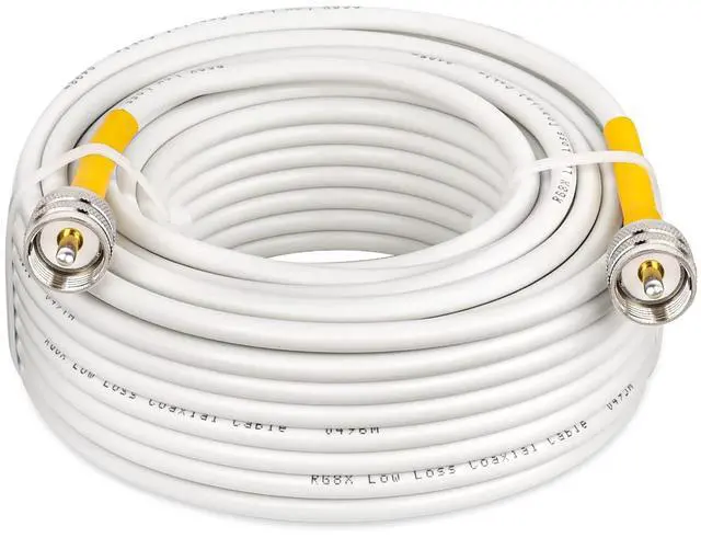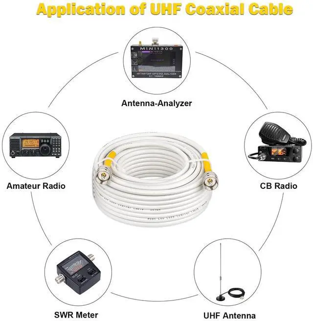 Applications -- This cb coax cable is widly used for vhf marine antenna, cb radio, ham radio, vhf radio, antenna analyzer, monitor, tuner, dummy load, SWR meter and ect. White marine coax cables are designed for use on boats and anytime a black colored cable isn't needed. ^^ Ultra Low Loss -- MOOKEERF rg8x coaxial cable(also called Mini-8) is a step up from standard RG58 coaxial cable. Its signal loss is much lower than rg58 cable. It could support better signal transfer with minimum signal loss over large distances and higher frequency use.