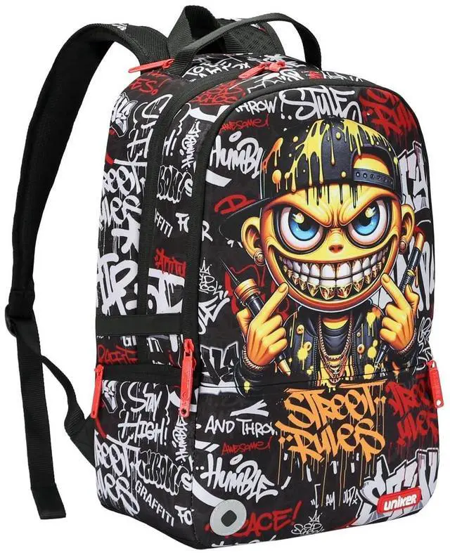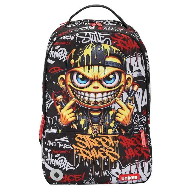 DescriptionIt has a hidden pocket right behind to handle strape on the top of backpack which is nice for carrying wallet, phone and other valuables. Cool computer backpack has three main zippered compartments with independent laptop sleeve. 17.5 inch laptop backpack fits 15.6 inch laptop. Measuring 17.5 *12*6 inches, weight 0.80 kg. You can take it as backpacks for travel, adult backpack for work. Designer backpack with crazy art, it's perfect gift for Xmas, birthday and back to school.