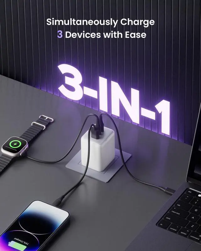 Hyper-Fast Charging: Connect a single device to get a 100W max chargethats enough to power up the 14" MacBook Pro (M3 Pro) to 50% in 30 Minutes. And when you connect three devices simultaneously, power will be distributed efficiently between ports to ensure you get the best charge.