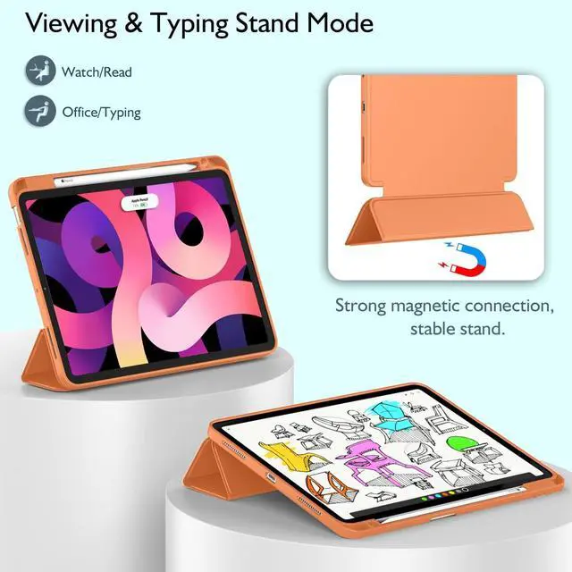Generation 2022 (model number: A2589 A2591 A2588) / iPad Air 4th Generation 2020 (A2316 A2324 A2325 A2072). Not compatible with any other devices. Please check the back bottom of your iPad to find the model number. ^^ Compatible for Apple Pencil Pro & 2nd Gen & Apple Pencil (USB-C), Support charging and attachment feature. ^^ [Full Protection] Made of PU exterior, microfiber lining and Soft TPU back cover. Provide full body protection against shocks, drops and scratches. ^^ [Support Touch ID and Auto Sleep/Wake Feature] Magnetic smart cover supports auto wake /sleep function. Powerful magnet secures the case closure, easy to snap on and off. ^^ [Different Viewing Angles] Designed with dual standing positions for users to adjust the iPad into different angles.