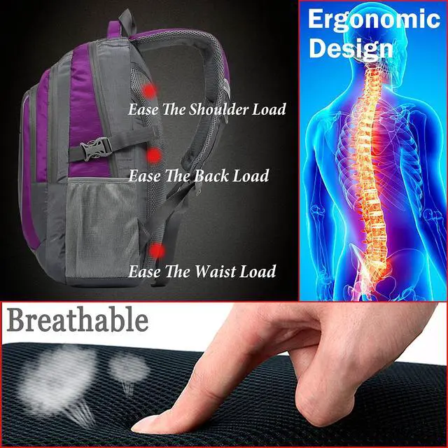 ERGONOMIC & AIR FLOW SYSTEM: this strong backpack with ergonomic design that S-Curved Shoulder Straps with breathable mesh and back panel with multi layer sponge padding could protect your backbone and ease the bear load, help relieve the stress from your shoulder, breathable materials will keep you comfortable.