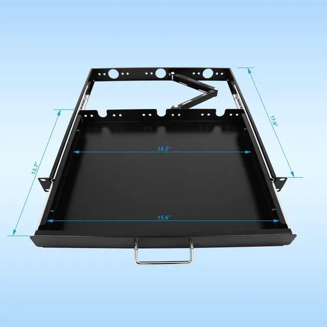 Tray size: 16.5 x 12.5 x 1.5. 4. Light weight and durable, premium quality craftsmanship, yet heavy duty up to 20LB weight capacity. 5. M6 Screws and Cage nuts are included.
