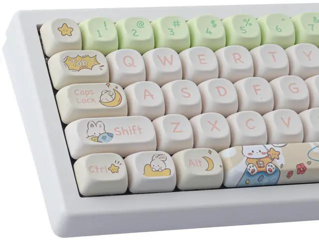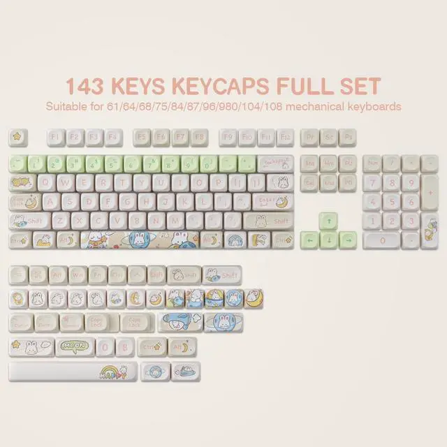 PBT Keycaps: These 143 keys cute keycaps are made of PBT material, with a matte texture and anti-grease coating. These keycaps are resistant to wear and tear, thick and durable, fine workmanship, and not easy to get dirty ^^