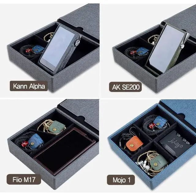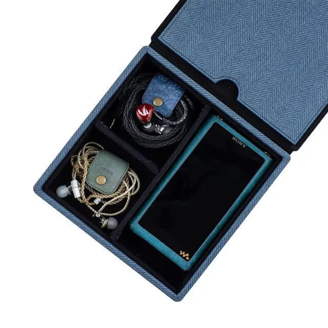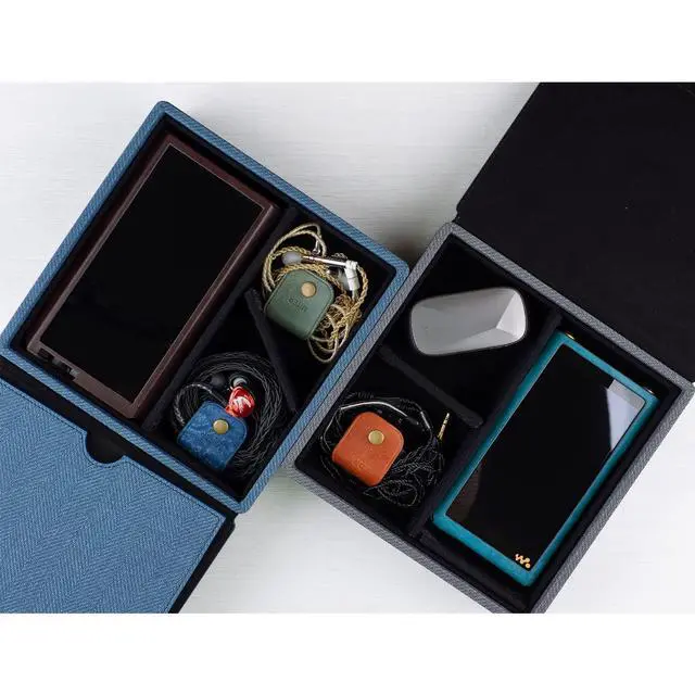 Handmade MITER Carrying Case for Digital Audio Player / IEM earphones / AMP / DACHand crafted by Superior craftsmanship. Protects from Shocks and Fingerprints and ScratchesMagnetic cover securely close and Separate compartments help to carry IEM earphones and a Player. Made in South Korea /