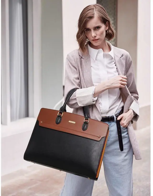 Premium Quality: This womens briefcase is made of vintage leather in a combination of off-white and brown, which is simple and stylish. Solid hardware and careful craftsmanship make it even more durable ^^