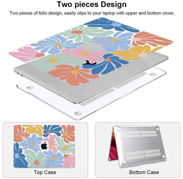 Protection: This macbook pro 13 case 2020 only 0.6 lb, you'll feel your macbook pro 13 a2338 more natural in handthe. hard shell macbook pro 13 inch m2 cover with two pieces snap on design, easy to put on and snap off. prevent your devices from unwanted cracks, scratches or damages. ^^ Unique 3D UV Painting, Slick hard shell cover with Crystal Transparent Printing finish to resist scratches and skidding. This macbook pro 13 inch M2 Case 2022 allows full access to all ports, fully open over 135 degrees. ^^ Fully vented for safe heat disbursement. The two rows vent slots at the bottom of the case can easily keep your macbook pro 13 2021 a2338 M1 device cool. The four raised rubber feet keep your laptop stable and safe. ^^ What you get - 1 printed pattern top case, 1 crystal transparent bottom case, 2 matching color silicone keyboard cover, 1 HD screen protector, 1 plastic webcam cover, and 1 cleaning brush.