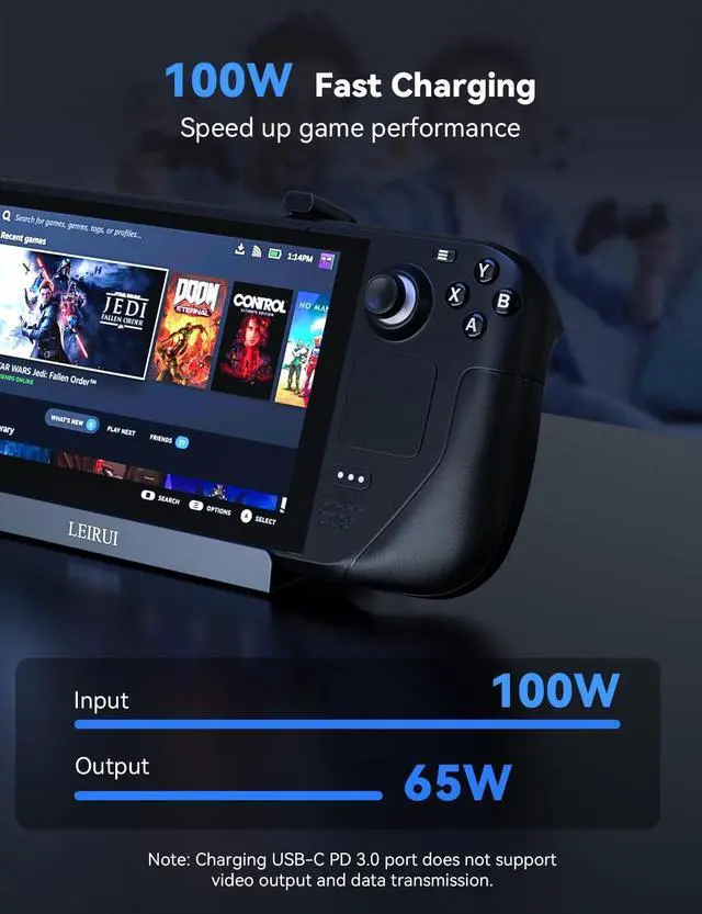 Fast Charging: Power up your Steam Deck, ROG Ally, Legion Go, or MSI Claw at full speed with 100W PD (Power Delivery). Stay in the game longer with rapid, uninterrupted charging,:. ^^