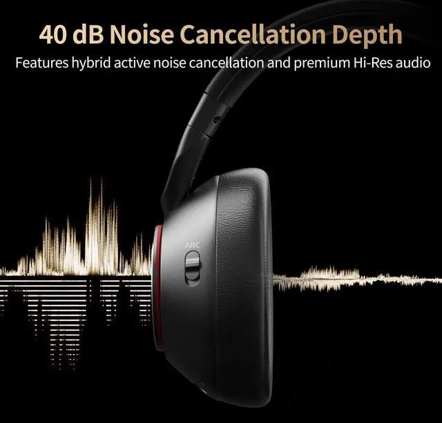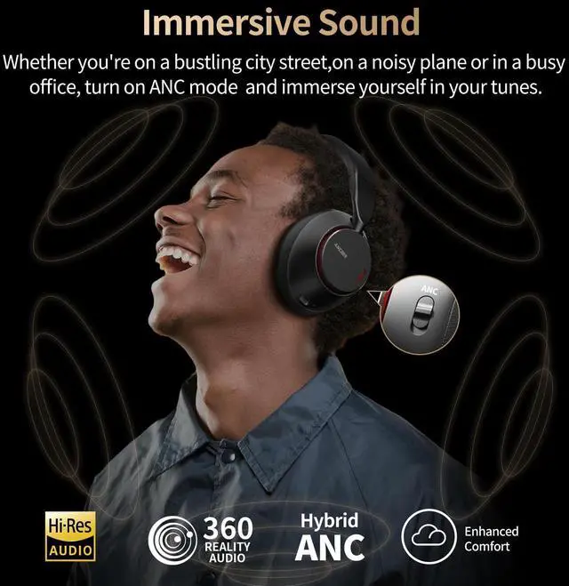 Active Noise CancellingStay away from noise and focus on music through noise cancelling headphones. Combining active and passive noise reduction, the bluetooth headphones can significantly cancel out the low & mid-frequency noises of aviation, car engines, commutes and other annoying background noises. ^^ High Fidelity Stereo HeadphonesThe wireless headset have 40mm drivers reproduce a full range of frequencies, significantly reducing loss in sound quality and restoring the essence of sound, providing deep, powerful, and immersive sound at any volume. Provide superb music and voice clarity. ^^ Both Wireless & Wired ConnectionsOver ear headphones with Bluetooth 5.3 chip, faster transmission speed, more stable connection, listening to audio and video without delay.