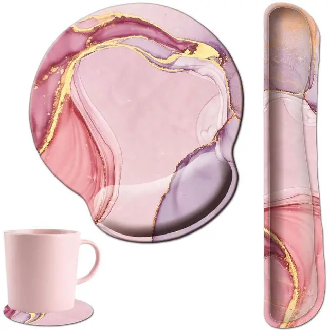 3 in 1 Ergonomic Mouse Pad, Keyboard Wrist Rest with Coaster Set, Memory Foam Keyboard Pad & Mouse Pad for Office, Computer Gaming Comfort (Rose Gold)
