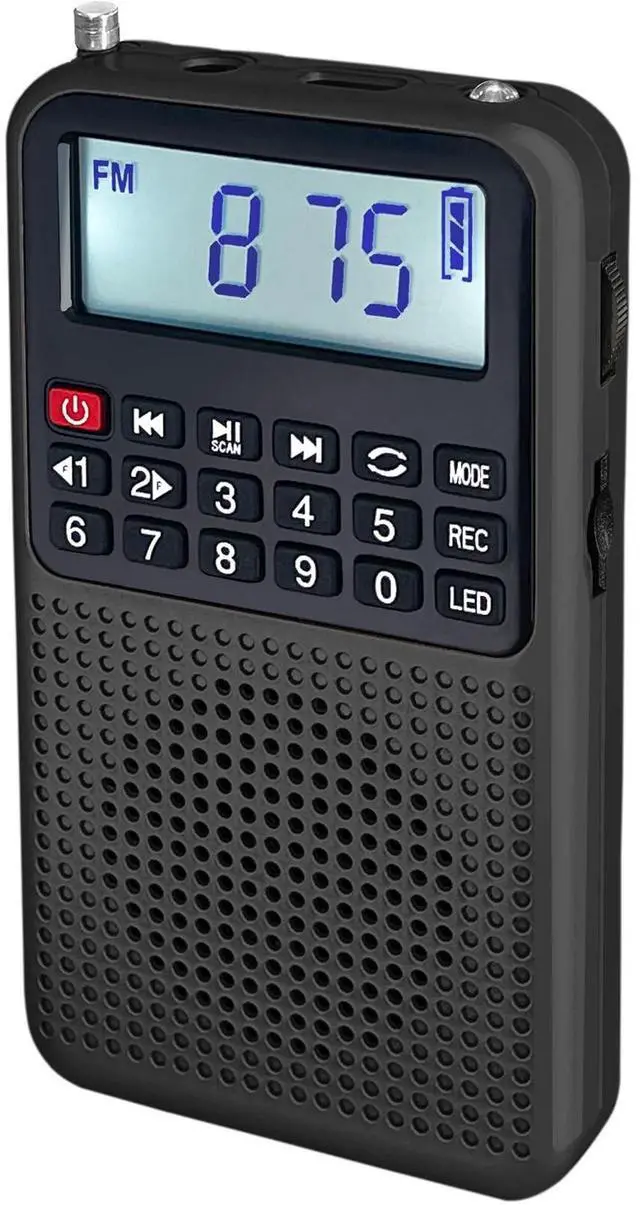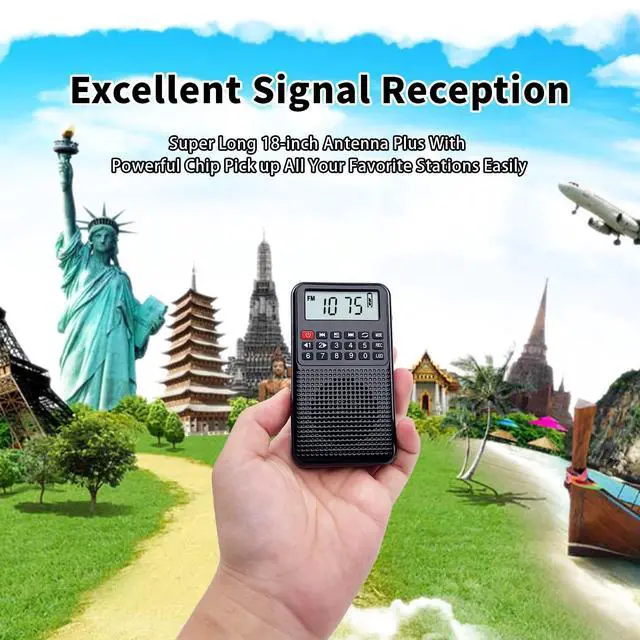 FM: 76-108 MHz, AM: 520-1710 kHz. Experience exceptional signal reception wherever you are, thanks to the 18-inch long antenna and advanced chip. Whether you're in the heart of the city or a remote area, local stations are at your fingertips. Tune effortlessly with a simple one-key operation, ensuring you never miss your favorite stations, with a storage capacity of up to 99 radio stations. ^^ Immersive Sound, Anytime, AnywhereExperience clear and resonant sound with our portable radio's built-in magnetic speaker. Share moments filled with excitement, whether it's the thrill of baseball games, engaging talk shows, timeless classical music, or breaking news with friends. For a private audio oasis, plug in your earphones to the 3.5 mm earphone jack, enhancing your immersive sound experience. ^^ Long-lasting, Rechargeable PowerEquipped with a 700mAh rechargeable battery, this AM FM radio can play continuously for over 6 hours, providing exceptional durability. The inclusion of a Micro USB charging cable allows for easy charging via various sources, such as USB adapters, computers, car chargers, or power banks. The LED indicator signals the charging status, remaining lit even when fully charged.