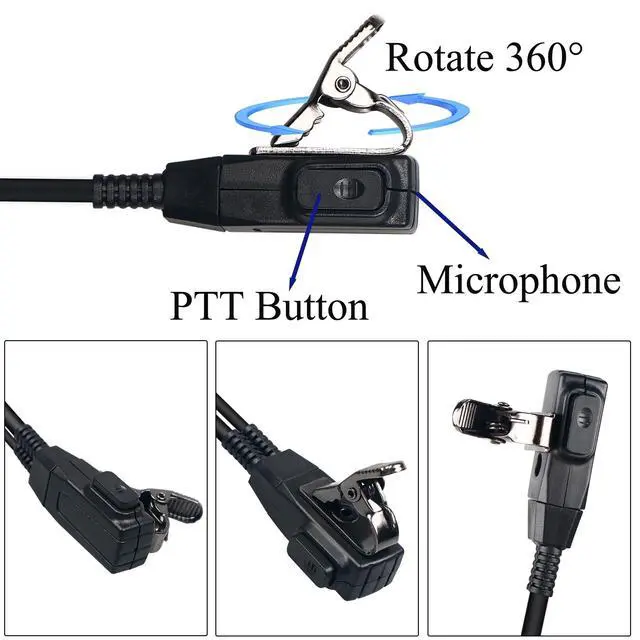 Noisy Environments: The walkie talkie earpiece with mic excels in noisy settings like concerts, sports events, warehouses, and security patrols. With a 360 adjustable clip for easy PTT placement, it adapts to any job or environment