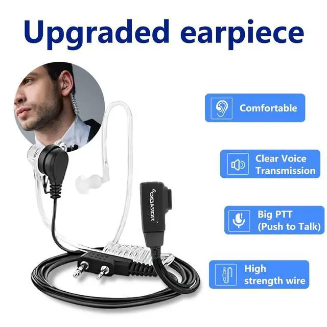 Hands-free connection: Acoustic tube is key to the headset's privacy, perfectly compatible with walkie-talkies; Push-to-talk button is a highly convenient feature that enables hands-free conversations ^^