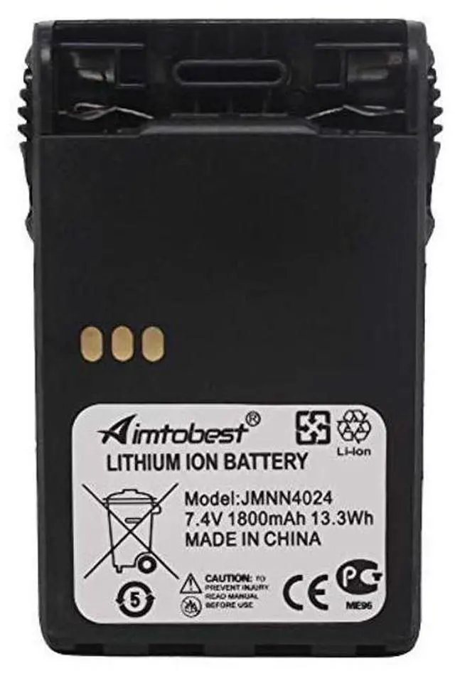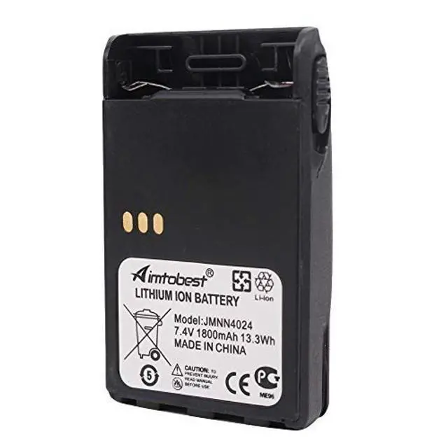 Replacement for Motorola JMNN4023, JMNN4023AR, JMNN4024, JMNN4024A, JMNN4024AR, JMNN4024BR, JMNN4024CR. ^^ 7.4V 1800mAh Li-ion rechargeable battery pack for Two-Way Radio Walkie Talkies. ^^ 100% new, factory packed and never been used. Replaces your radios stock battery, safe and of good storage. ^^ Ultrasonic sealing technology, Impact-resistant design, Dual protection PCM Short circuit protection. ^^ All products are replacement part with our own brand Aimtobest. The mention of other brand name or specific model is solely intended to illustrate compatibility.