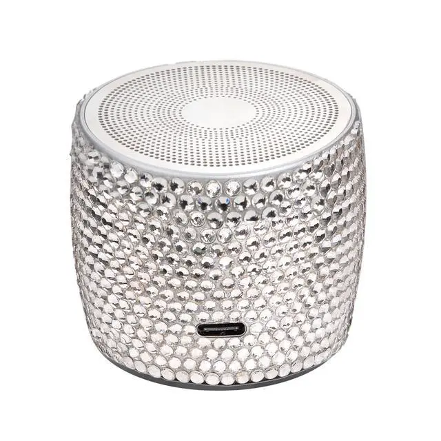 Luxury Crystal Rhinestone Portable Wireless Bluetooth Mini Speaker with Passive Subwoofer, Enhanced Impactive Bass, Tiny Body Loud Voice, for Sports, Travel and Home - Silver White