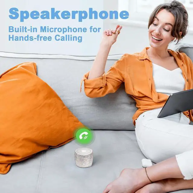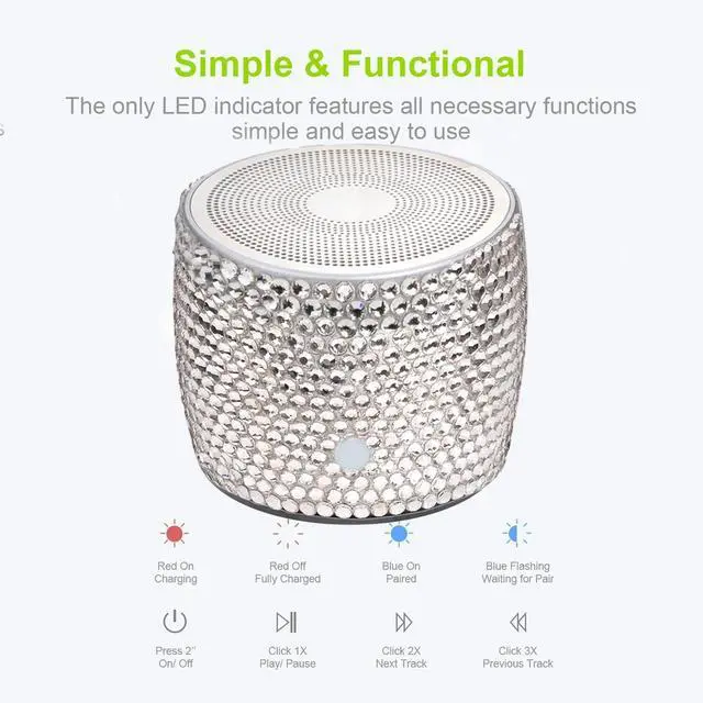 Unique Stunning Design - Hand laid LUXURY AUSTRIAN rhinestone crystals adds sparkle and bling to your space, a bedazzled unique gift. It is not only a high-quality mini wireless speaker, but also a desktop artwork . Also, the various color option and the compact size make it the best choice for home, office or travelling use.