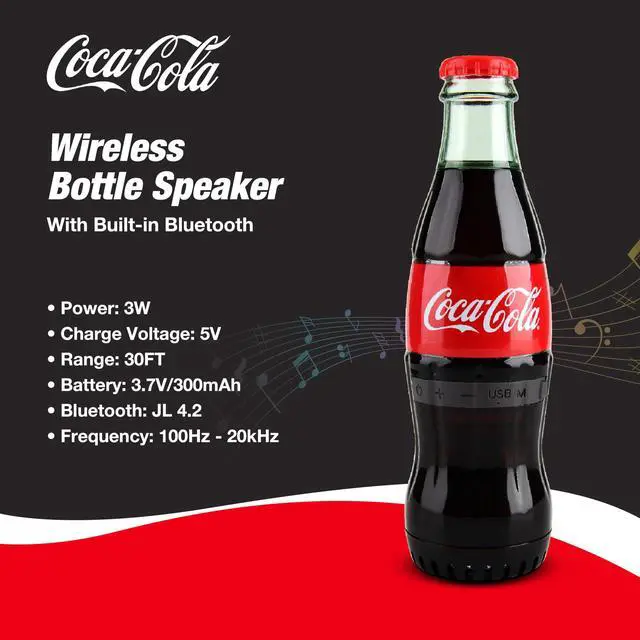 PORTABLE AND EASY TO CARRY: Our Coca Cola bottle shape speaker goes wherever you do! Whether it's a beach day or BBQ with friends, it's lightweight and compact, making it a snap to bring along. Just charge it up, toss it in your bag, and enjoy music on the go with your loved ones. It's the perfect gift for any occasion, ensuring you never miss a beat of the fun! ^^