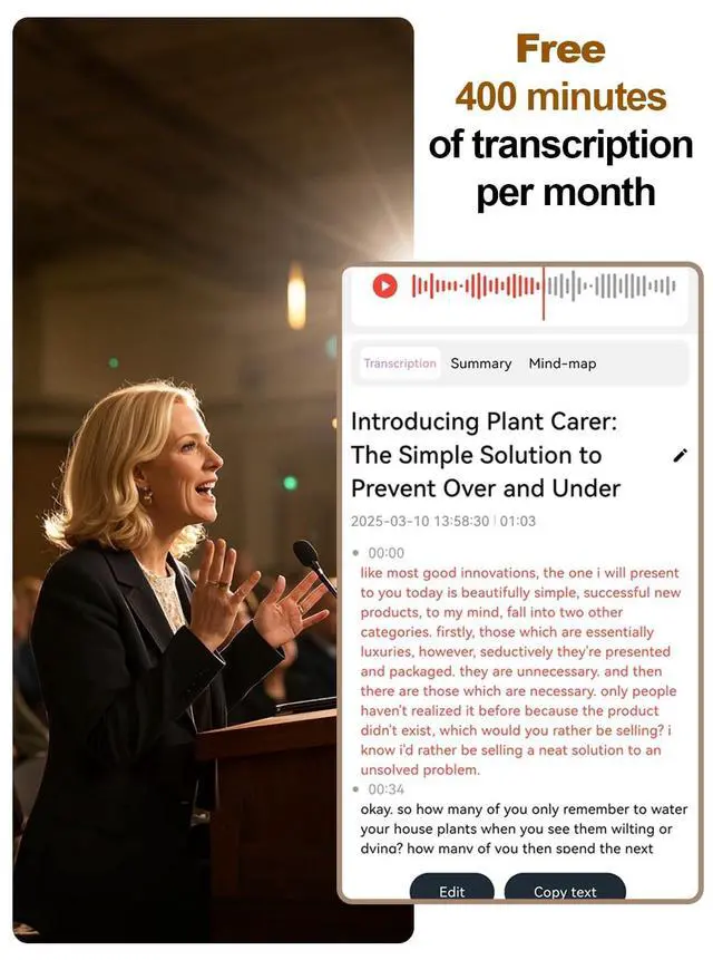 AI Voice Recorder HOvicative AI Voice Recorder integrates advanced transcription functions and enables fast and accurate transcription in 144 languages. Effortlessly create summaries, logs and to-do lists, greatly increasing daily productivity. ^^ Excellent sound qualityAudio Recording Device is equipped with two integrated microphones that work with AI speech enhancement to ensure excellent sound quality. The cooperation of the two microphones improves sound recording and reduces disturbing background noise. This not only increases the clarity of the recordings, but also gives the sound a three-dimensional and fuller quality during the recording process. ^^ Dual microphone noise reduction Experience crystal clear recordings for meetings, lectures and interviews thanks to dual microphone technology.