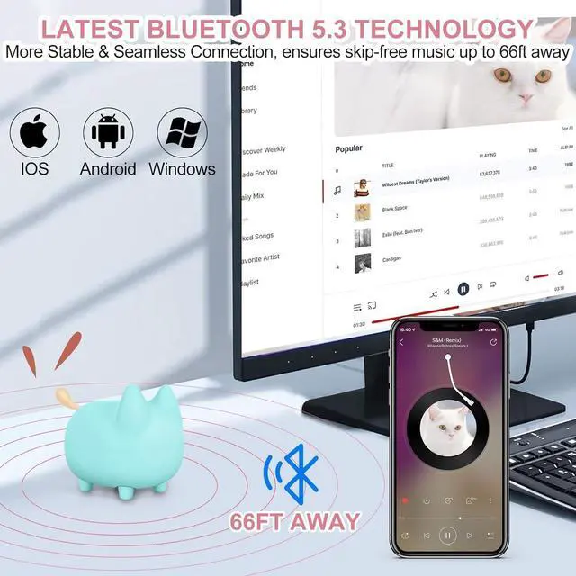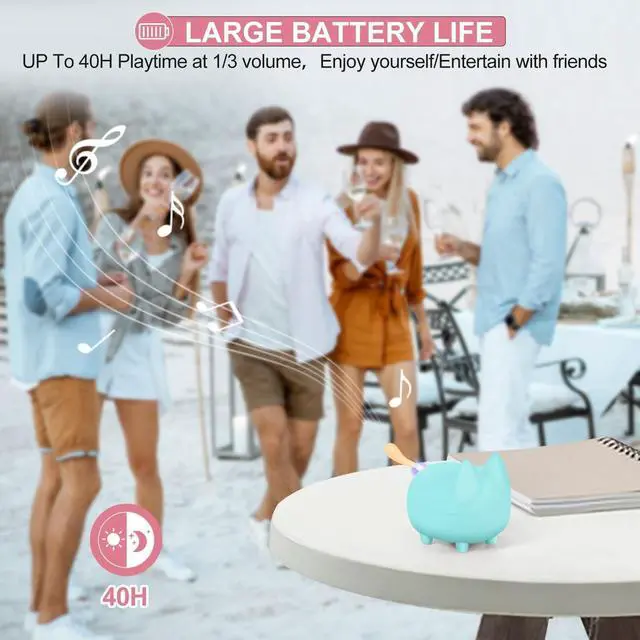 Compact Design: This portable Bluetooth speaker features a small cat-shaped design that is irresistibly adorable. It's perfect for adding a touch of cuteness to any space; Small size and lightweight, 3.54 *2* 2.6 inch, This cute speaker is perfect for a handbag/backpack and pocket; You can enjoy music with this small wireless Bluetooth speaker home and travel; It is also the cute home/desk/office/room decoration ^^ Convenient and