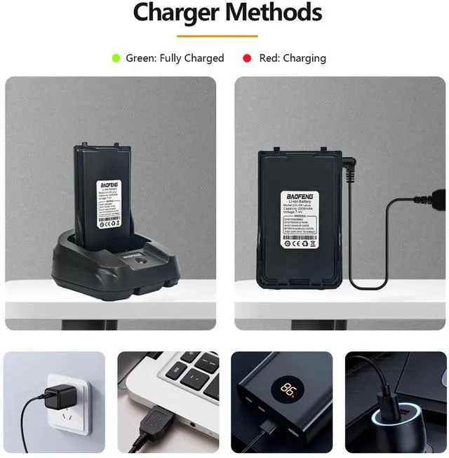 • BAOFENG original battery 2800mAh, can be charged by charger dock and fast charger cable.