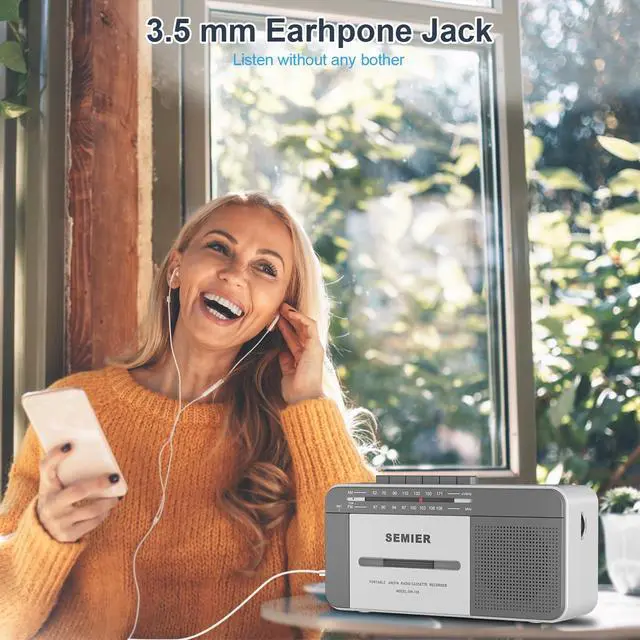 Plus, it includes a 3.5 mm headphone jack for private listening with your favorite headphones. ^^ Portable and Convenient Design Measuring just 9.5 x 3.3 x 4.5 inches and weighing only 2.2 lbs, our cassette player with speaker includes a portable handle for easy transport, making it ideal for both indoor and outdoor use. ^^ Flexible Power Options The cassette player boombox can be powered via AC plug-in ( AC cord included) or with 4 C batteries, providing convenient portability for use at home or on-the-go, making it an ideal choice for those who appreciate old school boombox nostalgia.
