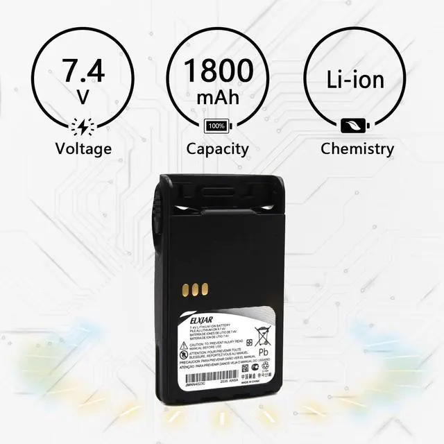 Seamless Compatibility Designed for Motorola two-way radios, including EX500, EX560, EX600, GP328Plus, PRO5150 Elite, and more. A perfect replacement for JMNN4023, JMNN4024, and similar OEM models. ^^ Powerful and Long-Lasting Features an 1800mAh lithium-ion capacity for extended communication time, ideal for both professional and recreational use. ^^ Reliable Performance 7.4V rechargeable battery delivers stable and efficient energy output, ensuring your radio operates smoothly. ^^ Easy Installation Matches the specifications of the original Motorola battery for hassle-free replacement and secure fitting. ^^ Whats Included Comes with 2 rechargeable battery packs and the assurance of friendly and responsive customer service to keep you satisfied.