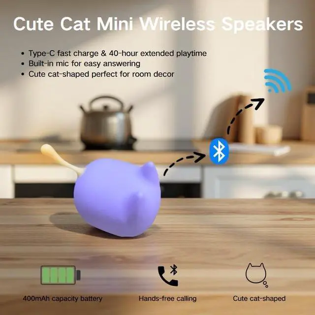 Cat Bluetooth Speaker: Featuring an endearing feline design with tactile silicone tail accents, this speaker offers delightful audio companionship. Its whimsical aesthetic may particularly appeal to cat enthusiasts and those seeking cheerful decor. The interactive elements create engaging moments, potentially contributing to relaxed atmospheres during daily use. An ideal present for celebrating meaningful connections with loved ones ^^