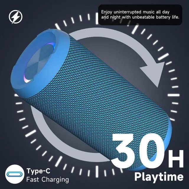 Playtime: The Portable Bluetooth speaker boasts an unbeatable 30 hours (around 65dB) of continuous music playtime or makes calls time(built-in Microphone), Enjoy music day to night - NEVER STOP! ^^ Upgraded