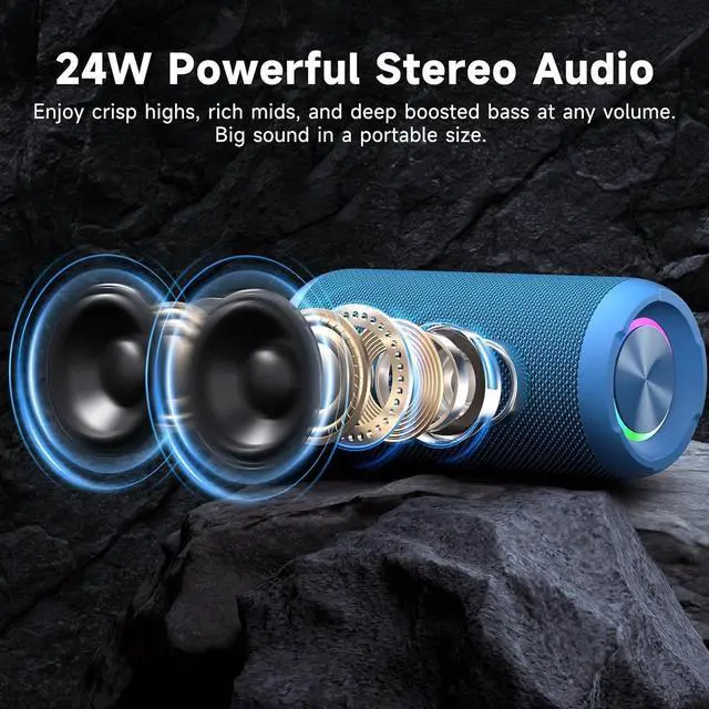 Bluetooth 5.3 Signal: Our wireless Bluetooth speaker can normally connect the device from 66 unobstructed feet away even under difficult conditions and the signal is not disturbed. The Bluetooth 5.3 chip easily reads the music playlist and connects any device such as a smartphone, TV, or laptop.