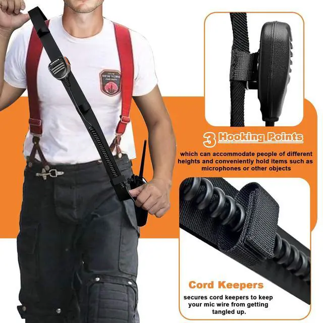 This radio strap and holster ensures that your radio remains safe, accessible, firefighters, officers, retired fire personnel, EMS, and fire buffs, you will be the center of attention on the fire ground with this radio strap and holder, comfortable alternative to manufactured leather straps. ^^ Radio strap adjustable length extra long to help cover your entire shoulder. slide its adjustable clip up to shorten the strap, or down for more slack. adjust from 36" to 65", which can be adjusted freely for your demand. Each strap has 3 webbing loops to secure the mic, and the bottom loop secures cord keepers to keep your mic wire from getting tangled up.