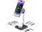 The wireless charger below operates at 5W and is specifically designed for AirPods with a wireless charging case, as well as Samsung's Galaxy Buds2, Buds Live, and Buds Plus ^^ Magnetic Stand Angles AdjustableThis docking station stand can be used as a stand for iPhones with MagSafe and also as a tablet stand ( attach the provided magnetic ring to the center back of your tablet). The strong magnet can support screens up to 12.9 inches and hold your device in either portrait or landscape mode. It features to swivel 180 degrees, adjust an angle to your liking ^^ You Will Receive1x USB C Hub with Wireless Charger Magnetic Stand, 1x USB-C to USB-C cable (about 20 inches long), 1x Magnetic Ring and 1x Manual