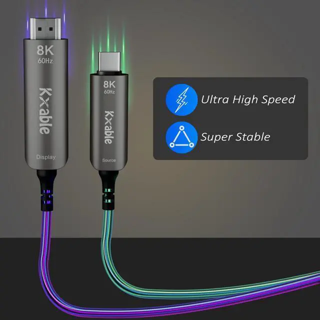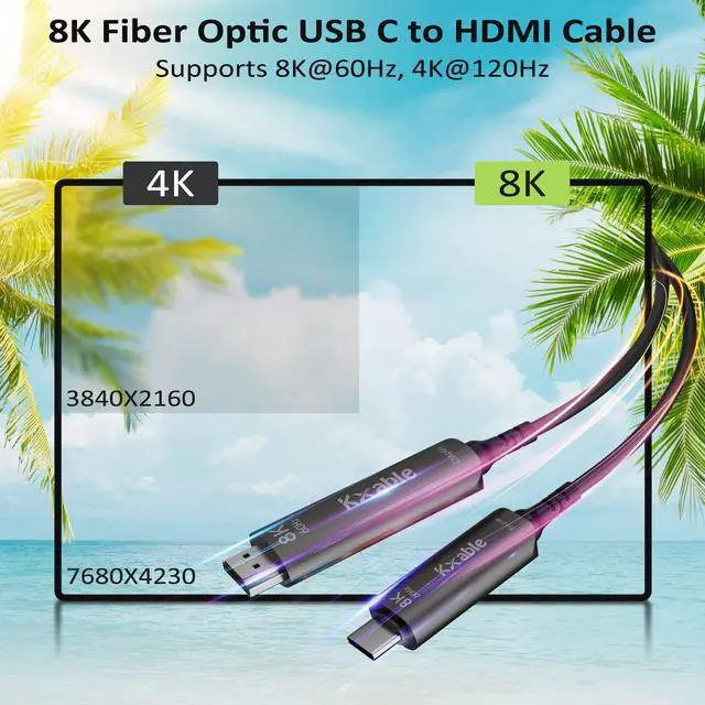 Kxable USB C to HDMI Active Optical CableWith 100% real 8K quality, each cable has been tested separately to support the highest standard of 8K HDMI 2.1.
