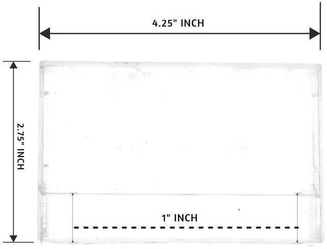 Holds one cassette tape and measures approximately 4.25 inches long x 2.75 inches wide x .6 inches height