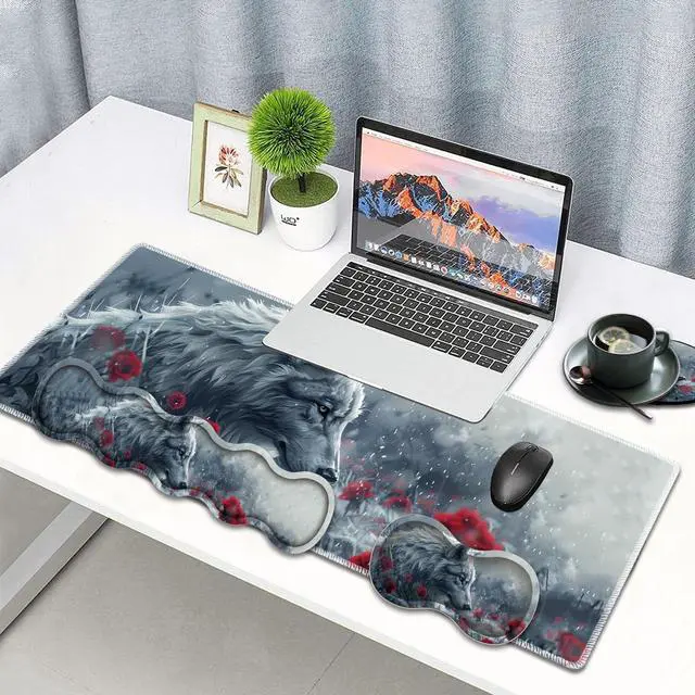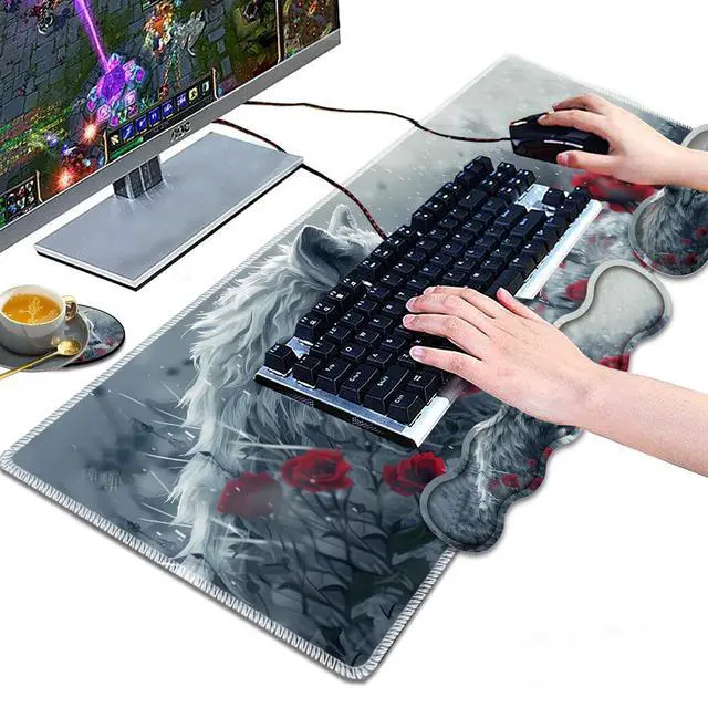 Large tabletop gaming mouse Pad and Keyboard wrist rest set, keyboard and mouse, light up your workspace with fun and beautiful design; Exquisite workmanship, work or play more comfortable.