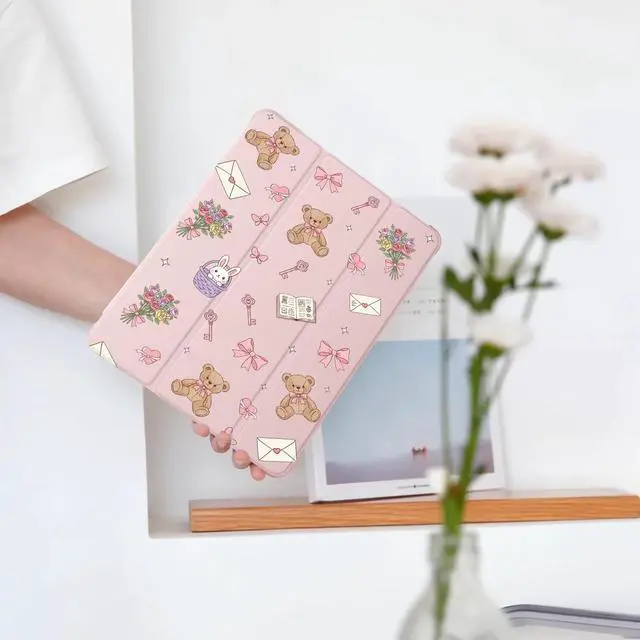 BlHMCASE Cute Kawaii Bear Bow for iPad (A16) 11th Generation Case 11 Inch 2025, for iPad 10th Generation Case 10.9 Inch 2022 with Pencil Holder, Auto Sleep/Wake, Pink Leather Soft TPU Back Cover