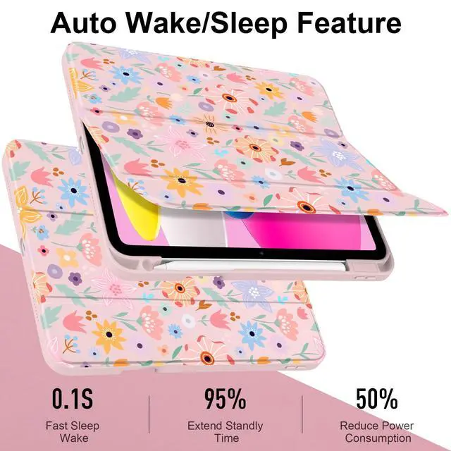 ^^ Smart Magnetic Function: Equipped with magnetic induction technology, this case automatically wakes up or puts your iPad to sleep, effectively extending its battery life. It's a convenient feature for daily use, whether you're quickly checking messages or taking a break. ^^