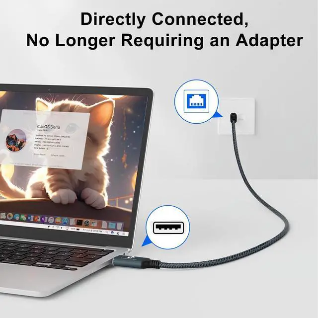 ^^ Wide compatibility Compatible with devices such as ChromeOS, Windows, Mac OS, Linux, etc. with USB A ports, it can serve as a powerful communication bridge between laptops, personal computers, and Ethernet. No driver required, plug and play, it is an important assistant for your business travel, travels, and lectures. ^^ Upgrade USB A to Ethernet Cable This USB-A to RJ45 Ethernet cable directly connects your computer and other USB-A devices to a router, modem, or network switch for network connectivity, rather than connecting to the internet through a USB-A to RJ45 adapter and Ethernet cable, making it very convenient.