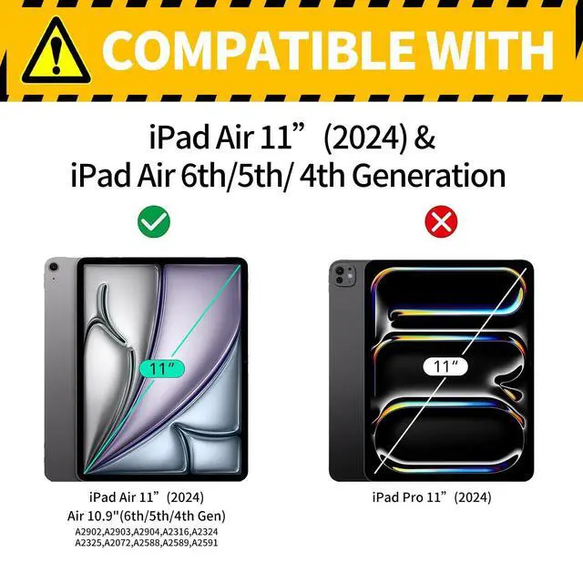 Release (Model number: A2316 A2324 A2325 A2072). It is Not for any other devices. Please check back bottom of your iPad to find the model number ^^ High-Quality MaterialCase for iPad Air 6th Generation /iPad Air 5th Generation 2022 /Air 4th Gen 2020 10.9 Inch is made of high quality PU leather exterior and soft tpu lining provides full-body protection against scratches, shocks, drops, and impacts ^^ Adjustable Angles for iPad Air 11 Inch M2 2024 Release case with multiple viewing angles, to enjoy the most comfortable typing and movie-viewingfreeing your hands for other entertainment activities ^^ Auto Wake/Sleep The magnetic case for iPad Air 11 Inch Case M2 (2024) /iPad Air 6th/5th/4th Gen (2024/2022/2020) automatically wakes your device when opened and puts it to sleep when closed. Easy access to all features and controls ^^ Cute Pattern Design A range of striking pattern design available for you to choose, bright and fun pattern colors to protect and decorate your tablet. It is the best gift for women, men, family and friends. Any question, just feel free to contact us