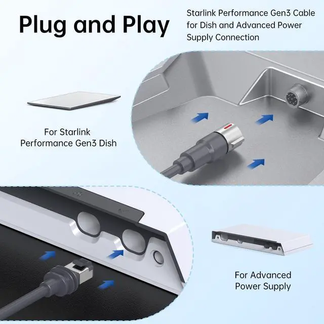 High-Speed PerformanceDesigned for Starlink Performance Gen3, our 33FT/10M starlink cable is built with high-quality 23AWG wire to deliver speeds up to 2000Mbps with minimal latency, ensuring smooth, uninterrupted online experiences even during bandwidth-heavy tasks. ^^ Weatherproof & DurableThis Starlink Performance Gen3 cable is weather-resistant, flexible, and anti-aging. With a waterproof exterior, The starlink cable is perfect for both indoor and outdoor installations, standing up to rain, snow, and other harsh weather conditions. ^^ Easy Installation Plug & PlayNo setup hassle required! Simply plug in the starlink cable gen 3 to start using it.