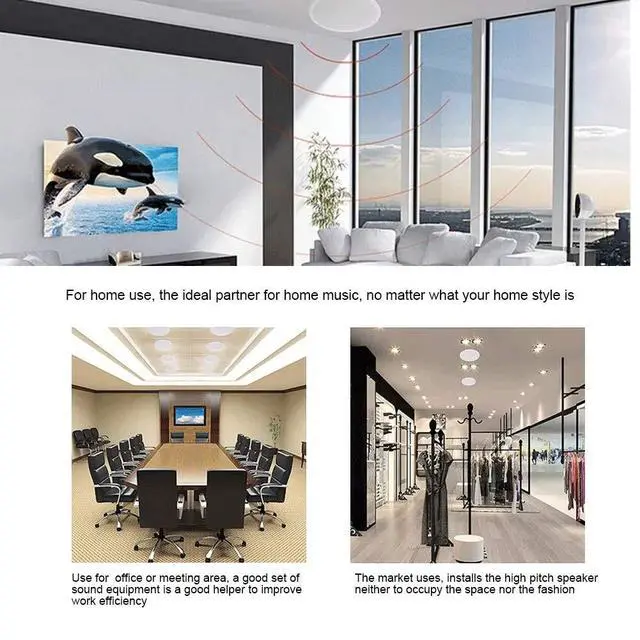 Speaker, sound quality is clear, voice direction, sound quality is good. ^^ Rear mounted with pure aluminium heatsink, solid power. ^^ Terminal, large positive pole, small negative pole, comfortable connection. ^^ Suitable for home, office, shopping mall, simple, practical. ^^ Compact size, easy to carry, can be used anytime and anywhere, convenient, fast.