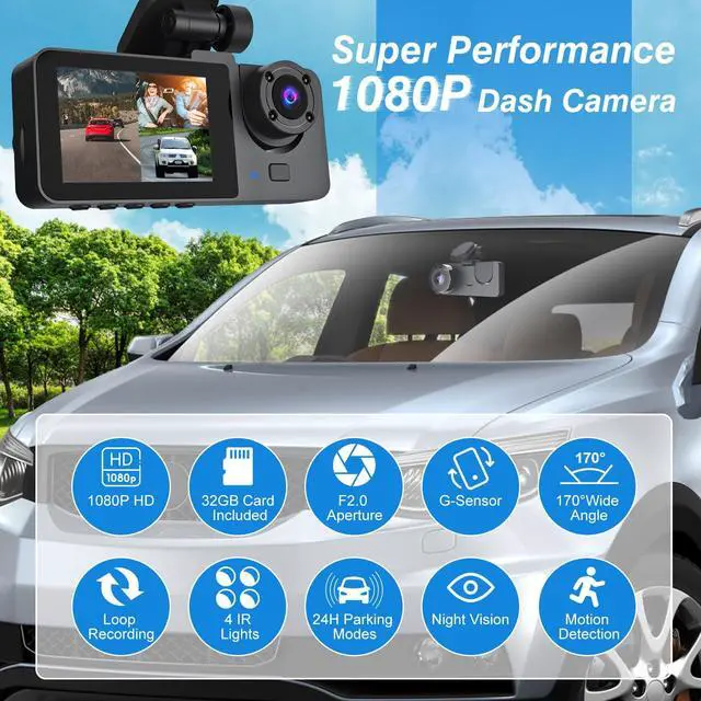 Full HD Recording: ** This **dash camera for cars** simultaneously records the **front, inside**, and **rear** with **1080P Full HD resolution**, providing **comprehensive protection** for your vehicle. The **170 wide-angle lens** covers multiple lanes, capturing crucial details like license plates and road signs, ensuring you have clear evidence in case of any incident. ^^ ** Advanced Night Vision & Motion Detection: ** Equipped with **infrared night vision**, the **car dash cam** delivers **clear footage** even in low-light environments, ensuring round-the-clock surveillance. **Motion detection** automatically triggers recording when movement is detected around your vehicle, offering **enhanced security** against theft and accidental damage. ^^ ** G-Sensor Emergency Lock &