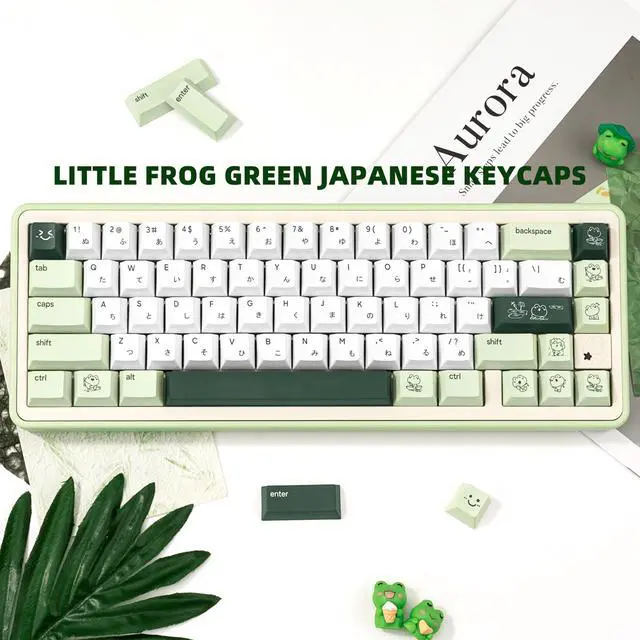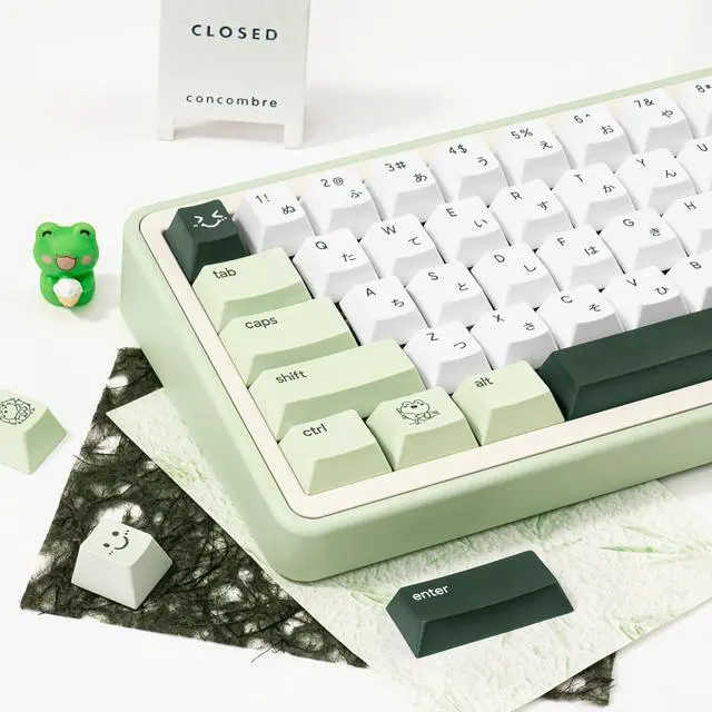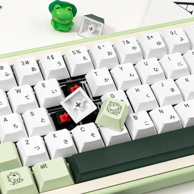 1. Durable PBT MaterialThe cute frog Keycap set is made of textured, durability and oil-resistant PBT material, compared with ABS, PBT has better hardness, more wear resistance and high temperature resistance, ensure a better user experience. 2. Cherry Profile KeycapThis green PBT keycap set is designed with the classic Cherry profileergonomically shaped to fit the natural curve of your fingers. Youll stay comfortable during extended work sessions, gaming marathons, or daily use without fatigue. 3. Wide compatibilityThis 134-key set fits most mechanical keyboard layouts, including 61/64/68/84/87/96/98/104/108 keys (60%/65%/75%/80%/100% sizes).