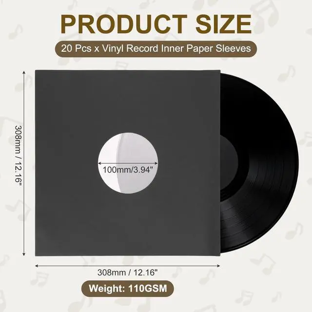 Package Contents: 20 Pcs x Vinyl Record Inner Paper Sleeves ^^ Made of acid-free kraft paper, these Vinyl Record Jackets are durable and tear-resistant, effectively protecting your records. They feature a polyethylene film lining to reduce friction and static electricity, thus maintaining record sound quality. The inner sleeves for vinyl records with a center hole allow for easy viewing of the record label without opening it, while also preventing dust and dirt from entering. ^^ Simply slide the record into the record covers; opening and inserting is quick and easy. The 120g kraft paper provides a certain degree of rigidity and uniform thickness. ^^ Please confirm dimensions before ordering.