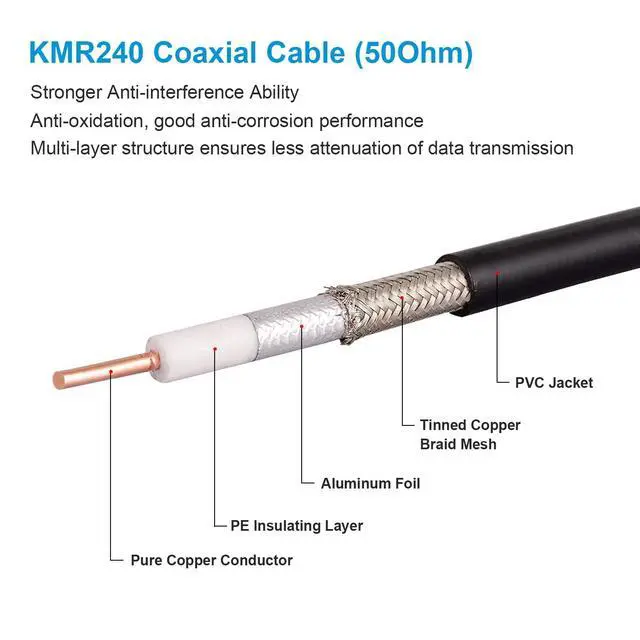 • [Ultra Low Loss]-The KMR240 jumper cable is bigger than RG58 cable, so it could transmit data with lower signal attenuation that low to -2.65db(25ft,1800MHz) and keep VSWR1.15.
