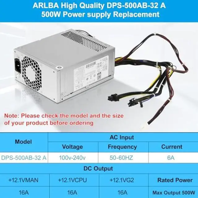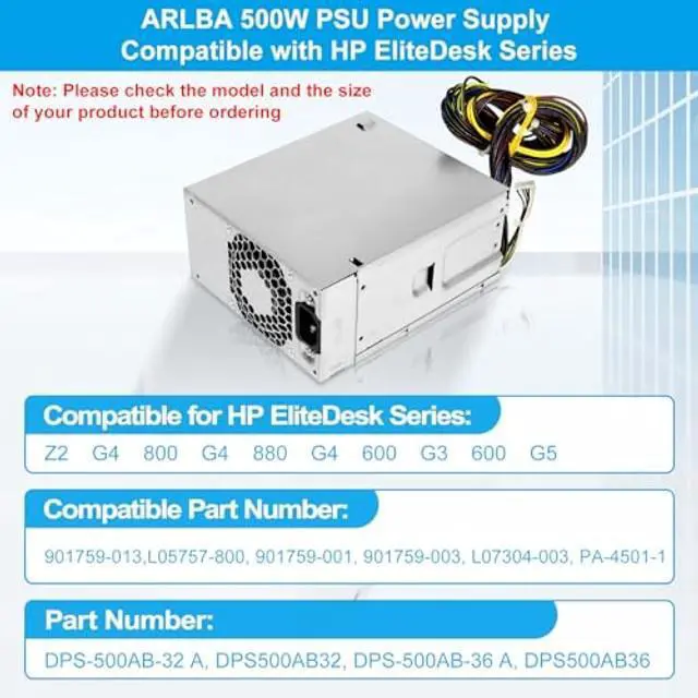 Power Supply Replacement PartARLBA high-quality DPS-500AB-32 A 500W L05757-800 Power Supply PSU Compatible with HP EliteDesk Z2 G4 800 G4 880 G4 600 G3 600 G5 Power Supply. The fan of the power supply adopts the latest temperature control system, and the fan speed is adjusted according to the data such as the computer CPU. The fan may be louder during high-power operation, but it will run quietly when the power supply temperature drops.