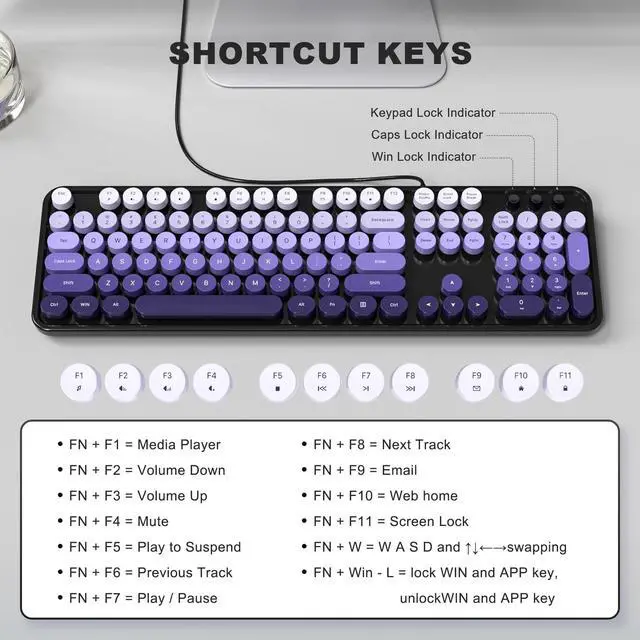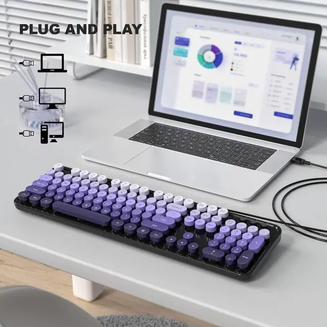 Atelus wired keyboard, cute appearance is specially designed for young people and ladies, it will become a good partner for office, school and family! Retro Typewriter KeyboardCute round keycaps, crisp and sweet sound, perfect knocking feel, let you find the feeling of a retro typewriter. And its detachable, make the keyboard easy to clean. Plug and PlaySimply connect your portable keyboard and computer with one USB cable, without any software.